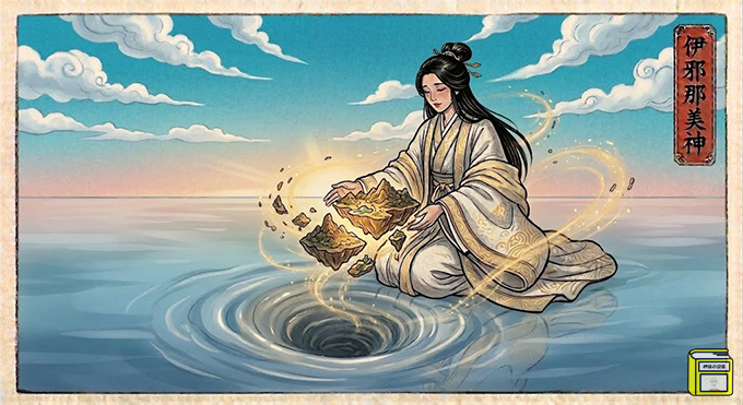 「国生み・神生み」の母: イザナギと結婚し、日本の島々(大八島国)を産み、その後も海、風、木、山、草など、この世のあらゆる自然を司る神々を次々と産み落としました。