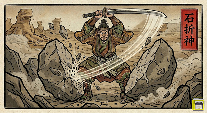 つまり、どれほど硬い岩であっても一刀両断にする剣の凄まじい切れ味を神格化した存在です。