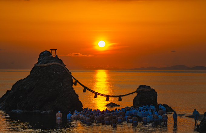 伊勢参りの禊の場所として知られ、伊勢神宮へ参拝される前に二見興玉神社へ足を運び参拝を行うことが古くからの慣わしとなっています。