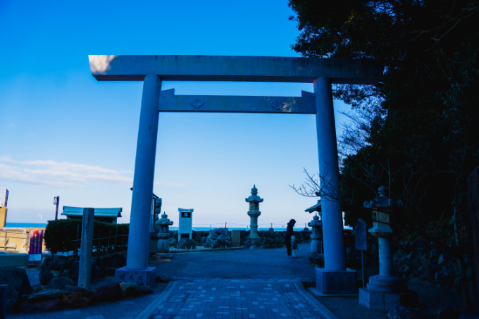 また、境内には「夫婦岩」と呼ばれるしめ縄で結ばれた大小二つの岩が海上にあり、神社の代名詞にもなっています。