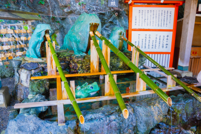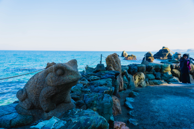 境内には神社の神使である「蛙」の像が至る所に奉納されており、二見興玉神社では縁起のいい生き物として親しまれています。