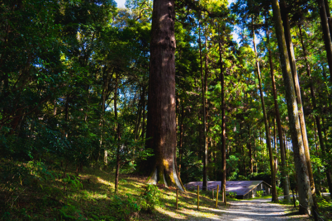 境内に一歩足を踏み入れると、そこには「しなねの森」と呼ばれる深い鎮守の森が広がっています。